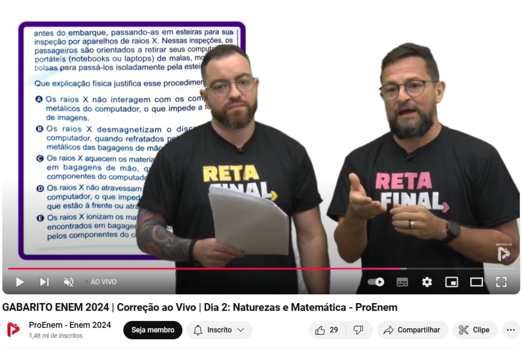 1. Assista à correção ao vivo: No canal do YouTube do Proenem, os professores resolvem e comentam cada questão, destacando os principais pontos.