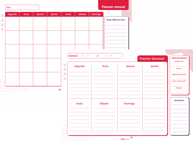 Organize seus estudos com planners diários, semanais e mensais.