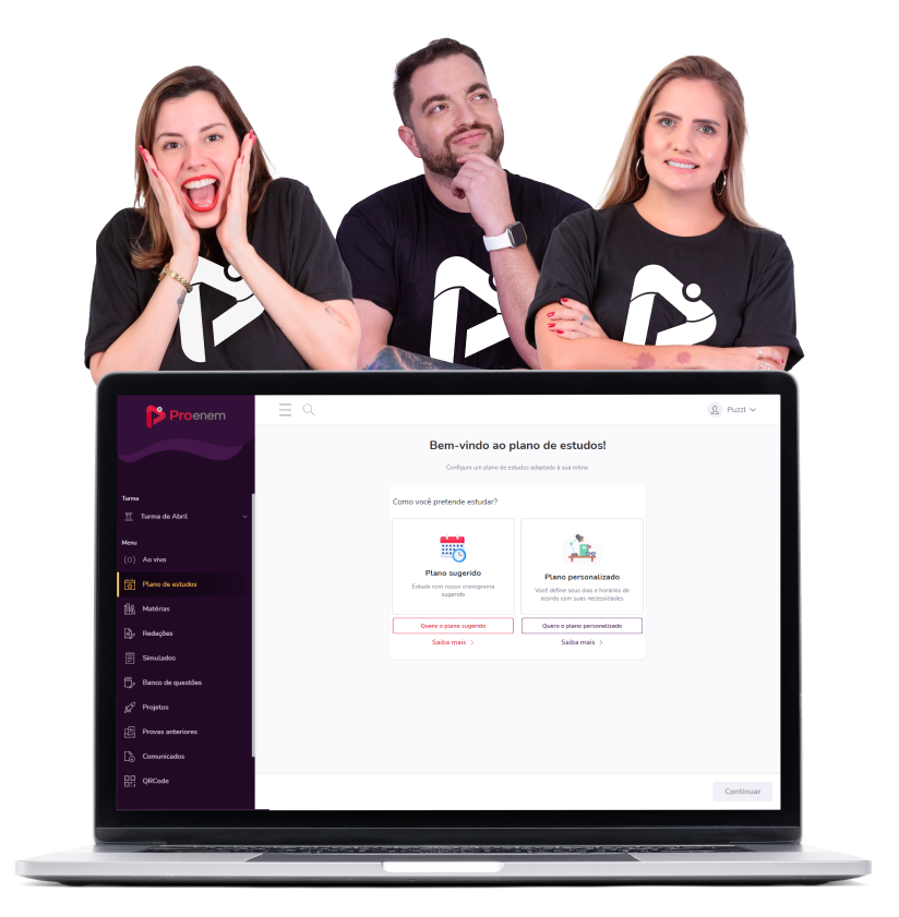 Essas questões podem ser exatamente iguais às da prova, e todas acompanham comentários e correção em vídeo. O Proenem segue em busca de sempre estar melhorando e oferecendo a preparação mais completa da internet para você passar no vestibular.